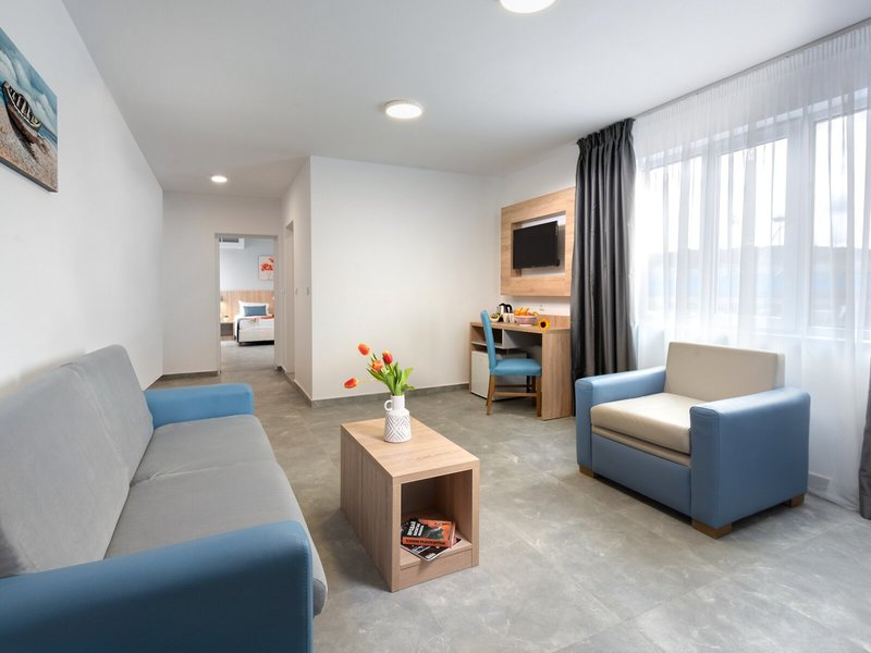 Vaše ubytovanie: Izby sú vybavené klimatizáciou a individuálne nastaviteľným kúrením. Hostia si môžu vychutnať výhľad na more z balkóna alebo terasy. Izby sú vybavené manželskou posteľou, posteľou veľkosti king alebo rozkladacou pohovkou. Samostatné spálne sú k dispozícii na požiadanie. Detské postieľky a prístelky je možné zabezpečiť. K vybaveniu všetkých izieb patrí trezor a minibar. Kuchynský kút je štandardne vybavený chladničkou a príslušenstvom na prípravu čaju/kávy. K dispozícii je aj telefón s priamou voľbou, satelitná/káblová TV a Wi-Fi pripojenie. Kúpeľňa so sprchovacím kútom a vaňou je vybavená sušičom vlasov a telefónom. Niektoré izby s bezbariérovým prístupom majú bezbariérové kúpeľne. Ubytovanie ponúka 130 nefajčiarskych izieb.