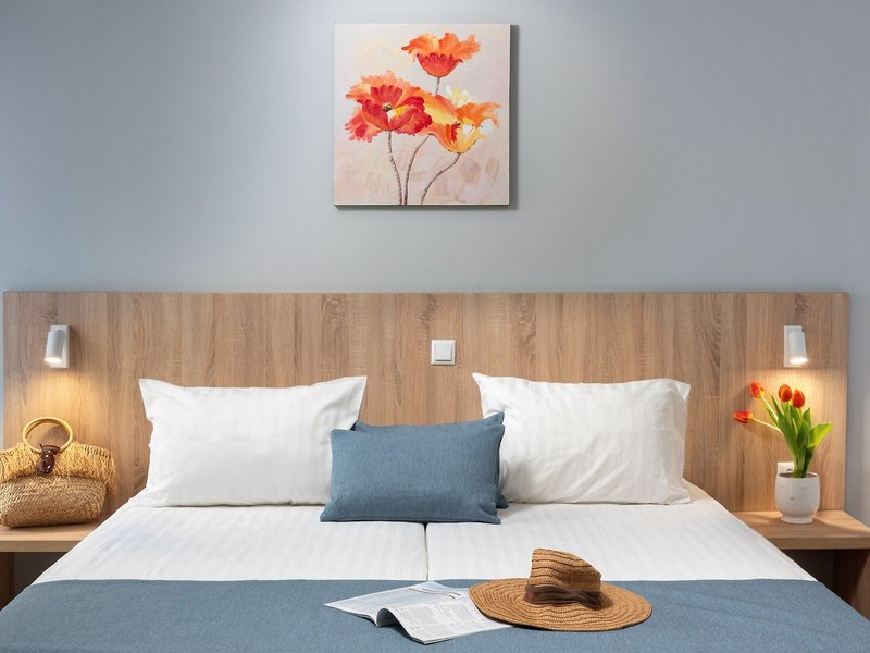 So wohnen Sie: Die Zimmer verfügen über eine Klimaanlage und eine individuell steuerbare Heizung. Die Gäste können den Meerblick von Balkon oder Terrasse genießen. Die Zimmer verfügen über ein Doppelbett, ein Kingsize-Bett oder ein Sofabett. Optional sind separate Schlafzimmer buchbar. Auch Baby- und Zustellbetten können zur Verfügung gestellt werden. Zu den Annehmlichkeiten in allen Zimmern gehören ein Safe und eine Minibar. In der Kochnische zählen ein Kühlschrank und eine Tee-/Kaffeemaschine zum Standard. Darüber hinaus sind ein Telefon mit Direktwahl, ein TV-Gerät mit Satelliten-/Kabelempfang und WiFi vorhanden. Im Badezimmer, ausgestattet mit einer Dusche und einer Badewanne, sind ein Haartrockner und ein Telefon vorhanden. Einige der rollstuhlgerechten Zimmer verfügen über ein barrierefreies Bad. Die Unterbringung bietet 130 Nichtraucherzimmer.
