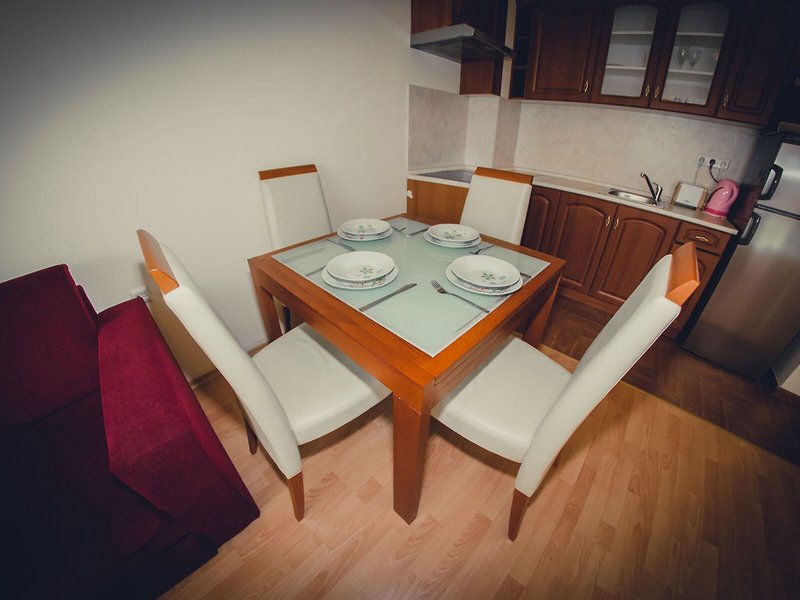 Ubytovanie: Izby majú obývaciu izbu a kúpeľňu a klimatizácia zabezpečuje príjemnú vnútornú klímu. Väčšina izieb má balkón. Hostia sa môžu pohodlne vyspať na manželskej posteli. Ďalším vybavením je možnosť rezervácie samostatných spální. Na požiadanie je možné pripraviť prístelky. Trezor poskytuje najlepšiu ochranu vecí hostí. Kuchynka je vybavená chladničkou, zariadením na prípravu čaju/kávy a rúrou. Pre väčšie pohodlie hostí je k dispozícii žehliaca súprava. K vybaveniu patrí telefón, káblová TV a rádio. Kúpeľňa so sprchovacím kútom je vybavená aj sušičom vlasov. Ubytovanie ponúka rodinné a nefajčiarske izby.