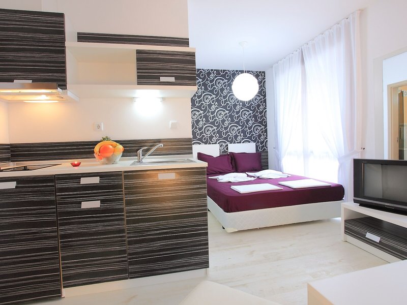 Lage & Umgebung Das Apartmenthotel liegt ungefähr 300 m vom Sandstrand entfernt, in zentraler Lage in Sonnenstrand.