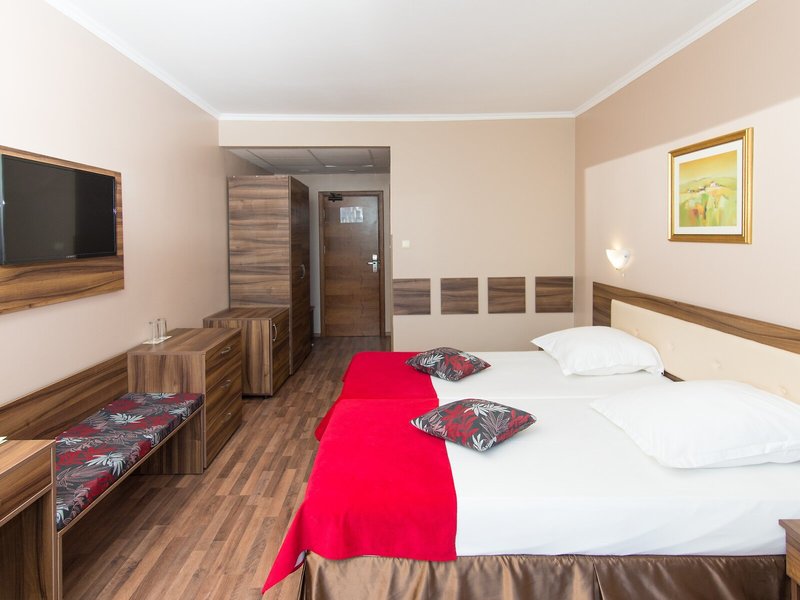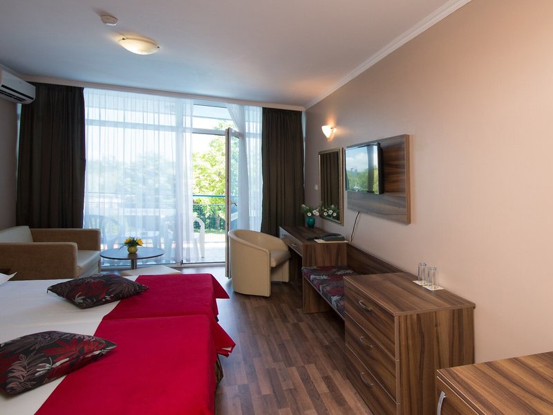 Poloha a okolie Tento atraktívny hotel strednej kategórie sa nachádza na hlavnej ulici Slnečného pobrežia. Pláž je vzdialená len asi 150 m. Verejná doprava sa k hosťom dostane priamo na mieste. Obchody, reštaurácie, bary a krčmy nájdete po cca 200 m a ďalšiu diskotéku po cca 500 m.