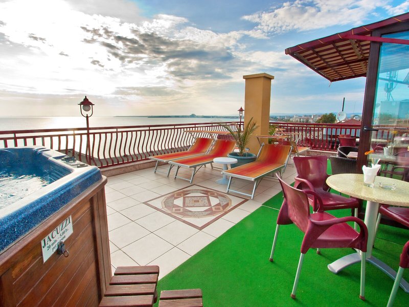 Šport & Fitness: Vnútorné a vonkajšie bazény sú ideálne pre pravidelný aqua tréning a aktívny relax. Dovolenku si môžete užiť na slnečnej terase s ležadlami a slnečníkmi. Vírivka v kúpacej časti sľubuje príjemný relax. Ak nechcete počas cestovania vynechať šport, môžete sa zabaviť pri rybolove. Cyklistika/horská cyklistika je k dispozícii za poplatok. Fanúšikom vodných športov je k dispozícii windsurfing. Hostia si môžu vybrať zo širokej škály indoorových športov v hoteli vrátane posilňovne, biliardu, bowlingu a aerobiku. Dom má wellness centrum s kúpeľmi, parným kúpeľom, hammamom, kozmetickým salónom, thalassoterapeutickými procedúrami a soláriom, ako aj saunou a masážami za príplatok. Detský klub, diskotéka, kasíno a nočný klub sa postarajú o tú najlepšiu zábavu vo voľnom čase.