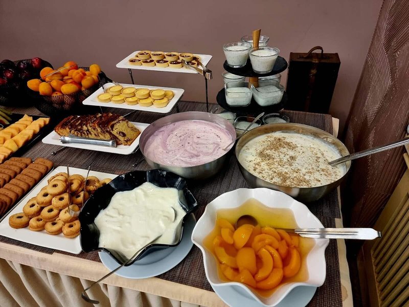 Jedlo a pitie: K stravovacím zariadeniam patrí jedáleň, kaviareň a bar V nefajčiarskej reštaurácii s oddeleným priestorom pre fajčiarov sa podávajú kulinárske špeciality. Ubytovanie ponúka ako rezervovateľné stravovacie služby polpenziu a plnú penziu. Bohaté raňajky formou bufetu, obed a pestrý večerný bufet sú chutné a rozmanité. V hoteli sú k dispozícii diétne jedlá pre špeciálne kulinárske požiadavky. Dom ponúka aj špeciálne možnosti stravovania.
