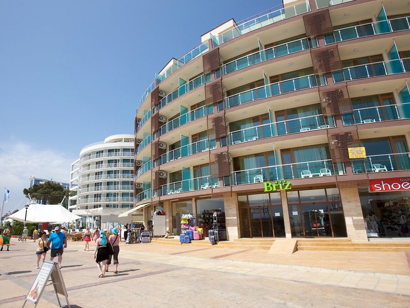 Poloha a okolie Tento plážový hotel má výbornú polohu v centre dovolenkového komplexu Slnečné pobrežie, iba 50 metrov od piesočnatej pláže. Hneď vedľa hotela nájdete obchody, reštaurácie, bary, nočný život a spoje verejnej dopravy. Autobusová zastávka je vzdialená asi 10 minút chôdze. Staré mesto Nessebar je od rezortu vzdialené asi 4 km a mesto Burgas asi 40 km. Letisko Burgas je od apartmánového hotela vzdialené približne 35 km a letisko Varna približne 120 km.