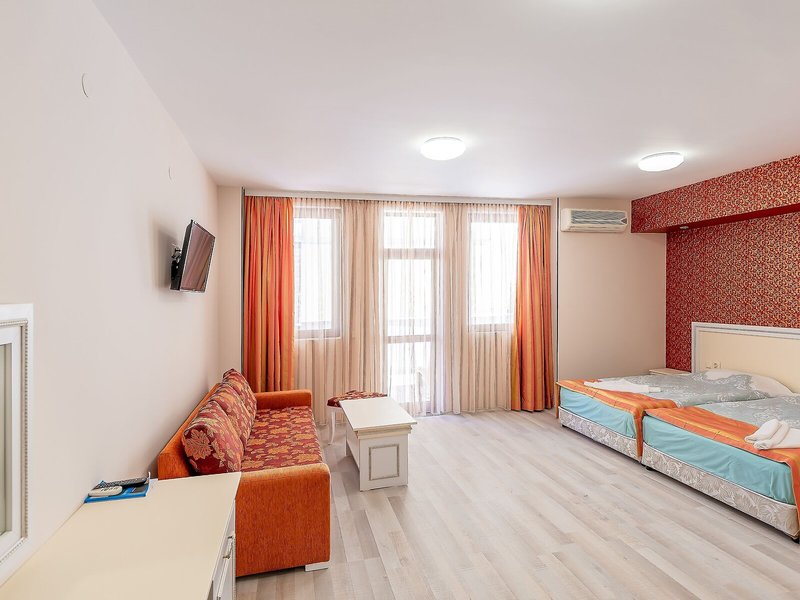 Vaše ubytovanie: Izby sú vybavené obývacou izbou, kuchyňou a kúpeľňou. Klimatizácia, individuálne ovládané kúrenie a ventilátor zabezpečujú príjemnú vnútornú klímu. Balkón je štandardom vo väčšine izieb. Izby s kobercom sú vybavené manželskou posteľou, posteľou veľkosti king alebo rozkladacou pohovkou. Prístelky je možné vyžiadať. Najlepšou ochranou vecí hostí je trezor. K dispozícii je plne vybavená kuchynka s chladničkou, sporákom, čajníkom/kávovarom a rúrou. Okrem toho je tu telefón, TV so satelitným/káblovým príjmom a WiFi (zdarma). Kúpeľňa je vybavená sprchovacím kútom a vaňou a sušičom vlasov. Kozmetické výrobky poskytujú extra pohodlie v kúpeľniach. K dispozícii sú aj bezbariérové izby s bezbariérovou kúpeľňou. Ubytovanie ponúka rodinné a nefajčiarske izby.
