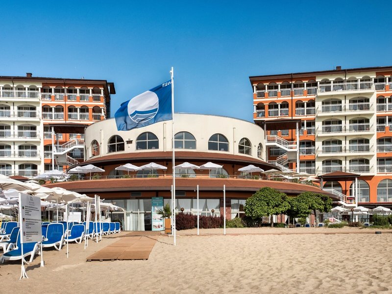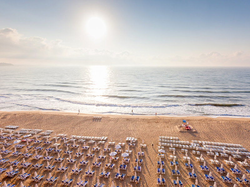 - Pláž: Piesková, jemný piesok, mierne sa zvažujúca, verejná s vlastnou hotelovou časťou, ležadlá: zdarma, slnečníky: zdarma