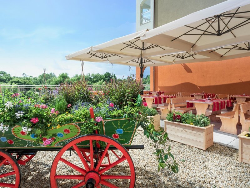 - Hlavná reštaurácia: Kuchyňa: medzinárodná, detská strava: bez poplatku, požiadavka a rezervácia nie je potrebná, diétna kuchyňa: bez poplatku, požiadavka a rezervácia nie je potrebná, bezlepkové jedlá: bez poplatku, požiadavka a rezervácia nie je potrebná, bezlaktózové jedlá: bez poplatku, požiadavka & rezervácia nie je nutná, vegetariánske jedlá: bez poplatku, vyžiadanie a rezervácia nie je nutná, vegánske jedlá: bez poplatku, vyžiadanie a rezervácia nie je nutná, bufet, show cooking, bez poplatku, máj - október, denne 7:30 dopoludnia – 10:00, 12:30 - 14:30 a 18:00 - 21:00, klimatizované, s terasou, detská stolička, vhodné oblečenie
