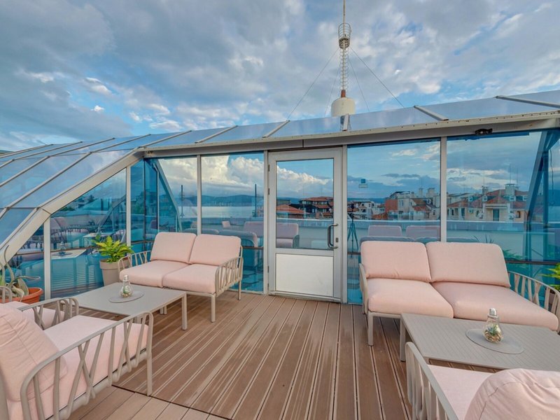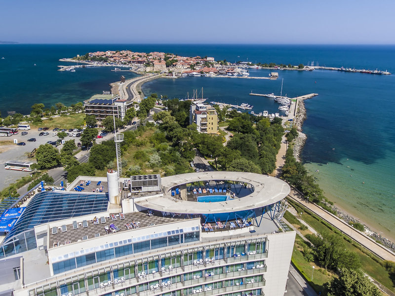 Lage & Umgebung An der Küste, an der Grenze zwischen der alten und der neuen Stadt von Nessebar. Den Strand erreicht man nach 300 Metern. Der Flughafen Burgas befindet sich in ca. 30 km Entfernung. Transferzeit: Ca. 60 Minuten.