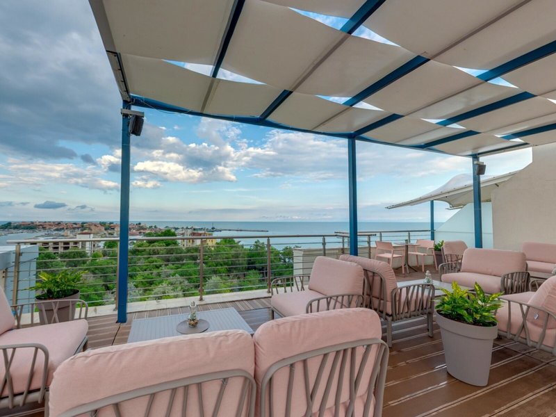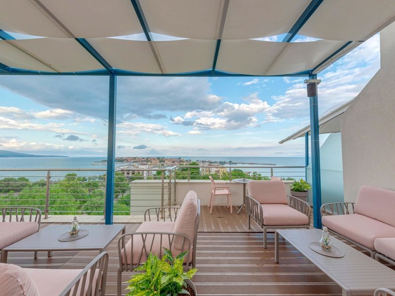 Poloha a okolie Na pobreží, na hranici medzi starým a novým mestom Nesebar. Na pláž sa dostanete po 300 metroch. Letisko Burgas je vzdialené približne 30 km. Čas prenosu: cca 60 minút.