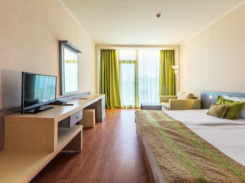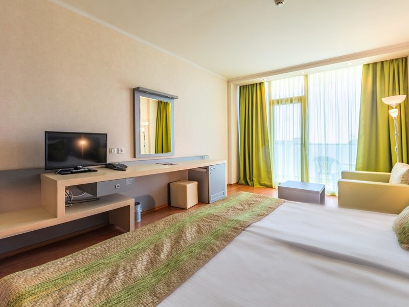 - Jednolôžková izba s manželskou posteľou (DSX1), dvojlôžková izba, nefajčiarska izba, minimálny vek v izbe: 16 rokov, v hlavnej budove, výhľad na Čierne more, cca 24 m², celkový počet izieb v tomto type izby: 1, rozloženie takto: kombinovaná obývačka/obývacia izba Spálňa, 2 samostatné postele, detská postieľka: bez poplatku, nutná požiadavka a rezervácia, klimatizácia: bez poplatku, individuálne nastaviteľná, centrálne ovládaná, studená, teplá, kúrenie, podlaha: dlažba , laminát, trezor: za poplatok, pohovka, písací stôl, chladnička: bez poplatku, rýchlovarná kanvica, minibar: za poplatok, telefón, internet: WLAN/WiFi: bez poplatku, televízia: plochá obrazovka, nemecký program, káblová TV, upratovacia služba : denne, bez poplatku, sprcha, WC, fén, kozmetické zrkadlo, balkón