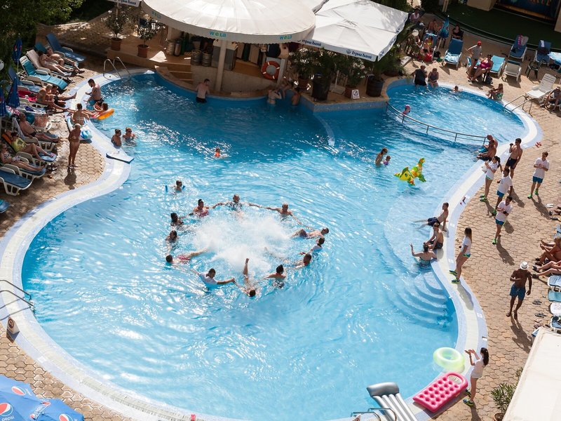 Šport a fitness: Vonkajší bazén s detskou časťou je ideálny na aktívny oddych a pravidelné vodné cvičenie. Osviežujúce nápoje v bare pri bazéne a upokojujúca relaxácia vo vírivke naladia všetkých milovníkov vody. Slnečná terasa s ležadlami a slnečníkmi je ideálnym miestom na opaľovanie. Pre tých, ktorí majú radi fyzickú aktivitu, je k dispozícii volejbal a minigolf. Hotel ponúka rôzne vnútorné športové aktivity, ako je posilňovňa a šípky, ako aj stolný tenis, bedminton a biliard (za poplatok). Hotel ponúka aj rôzne wellness aktivity vrátane kúpeľov, sauny, parného kúpeľa, hammamu, masáží a solária. Animačný tím hotela zabezpečuje zábavné programy pre deti aj dospelých.