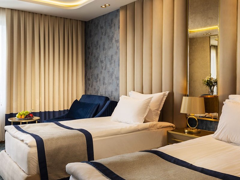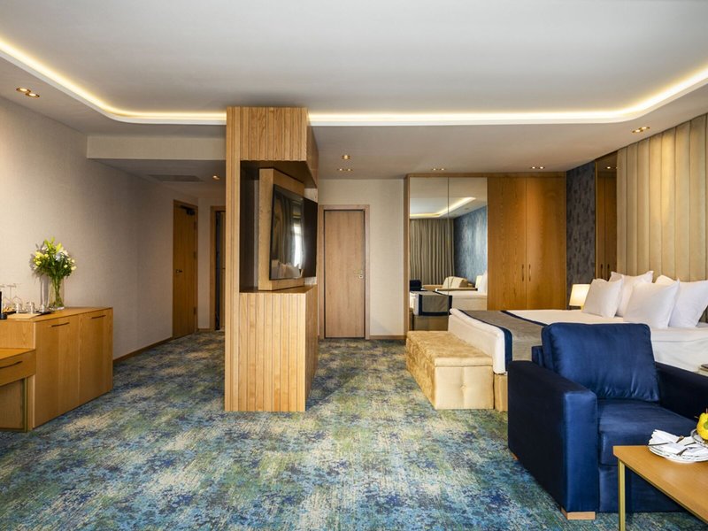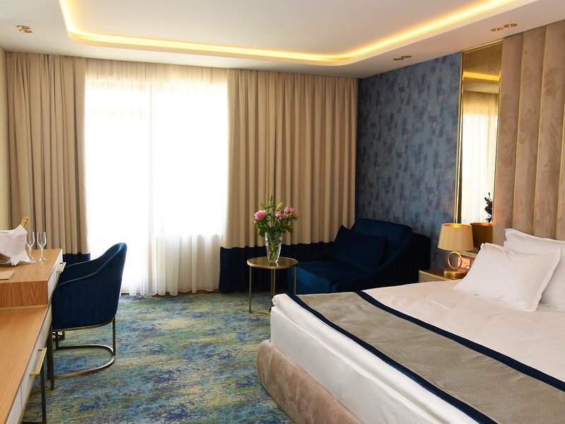 Takto sa ubytujete: Klimatizácia a kúrenie zabezpečujú príjemnú vnútornú klímu v izbách. Balkón je štandardom vo väčšine izieb. Izby s kobercom majú manželskú posteľ a rozkladaciu pohovku. K dispozícii sú aj detské postieľky a prístelky. K dispozícii je aj trezor a minibar. K vybaveniu izieb patrí príslušenstvo na prípravu kávy/čaju. Pre väčšie pohodlie hostí je k dispozícii lis na nohavice. K dispozícii je aj telefón, satelitná TV a WiFi (zdarma). V kúpeľniach nájdete sušič vlasov a kozmetické zrkadlo na každodenné použitie. Hotel ponúka nefajčiarske izby.