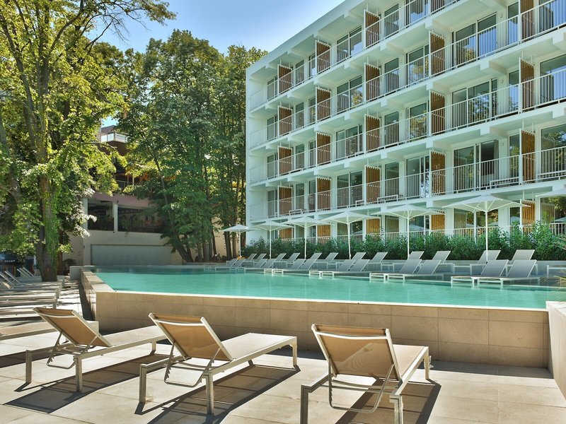 Lage & Umgebung Das Hotel liegt nur etwa 50 m von der wunderschönen Schwarzmeerküste und dem langen Sandstrand entfernt. In fußläufiger Entfernung laden pulsierende Bars und Restaurants zur Einkehr. Zur Hafenstadt Varna mit ihren spannenden historischen Sehenswürdigkeiten sind es etwa 18 km.