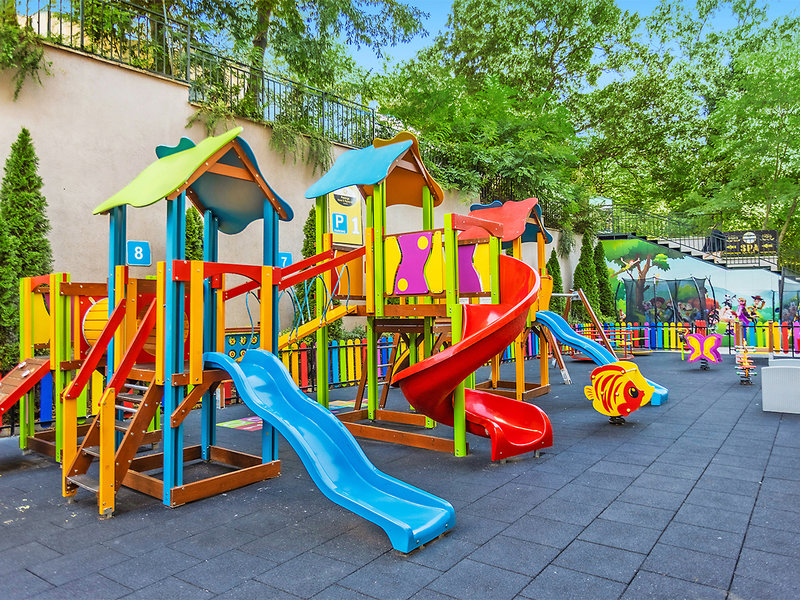 Ausstattung: Im Jahr 2025 renoviertes Familienhotel mit Swimmingpool, Sonnenterrasse, Liegen und Schirmen. Empfangsbereich mit Rezeption, Lobbybar, Restaurant, Café. Landeskategorie: 4 Sterne, 241 Zimmer, 8 Etagen, Lift.