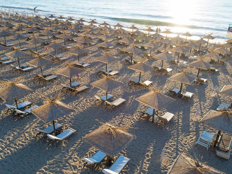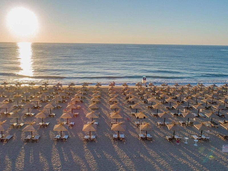 - Pláž: piesočná, mierne sa zvažujúca, schody na pláž, verejná s vlastnou hotelovou časťou, ležadlá: zdarma, v cene All Inclusive, slnečníky: zdarma, v cene All Inclusive