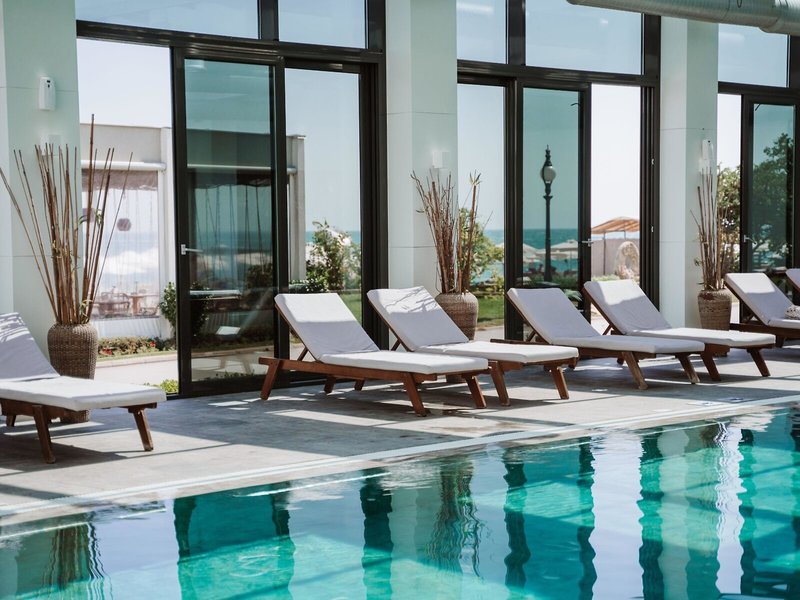 - Bazén Vnútorný bazén s presklenou strechou a stenami: zadarmo, v cene All Inclusive, vnútorný, sladkovodný, krytý, vyhrievaný: marec a máj - október, vo wellness, ležadlá: zadarmo, v cene All Inclusive