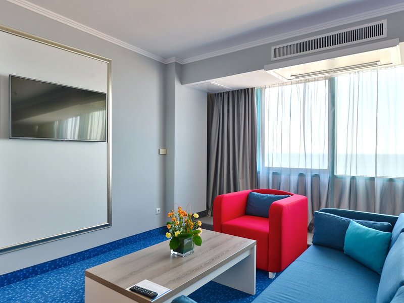 Ubytovanie: Klimatizácia a individuálne nastaviteľné kúrenie zabezpečujú príjemnú klímu v izbách. Väčšina jednotiek má balkón s výhľadom na more. Izby s kobercami sú vybavené manželskou posteľou, manželskou posteľou veľkosti queen, posteľou veľkosti king alebo rozkladacou pohovkou. Detské postieľky je možné poskytnúť bezplatne na požiadanie. K dispozícii je aj trezor, minibar a písací stôl. K dispozícii je aj minichladnička a príslušenstvo na prípravu čaju/kávy. Telefón s priamou voľbou, satelitná/káblová TV a Wi-Fi (bezplatne) zabezpečujú maximálny komfort počas dovolenky. Hostia nájdu v izbách papuče. Kúpeľne sú vybavené sprchovacím kútom, vaňou a bidetom. K dispozícii je sušič vlasov, kozmetické zrkadlo, župany a telefón na každodenné použitie. Pre väčšie pohodlie sú v kúpeľniach k dispozícii toaletné potreby. K dispozícii je aj päť bezbariérových izieb s bezbariérovou kúpeľňou. Hotel ponúka nefajčiarske izby.