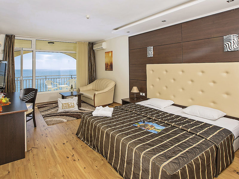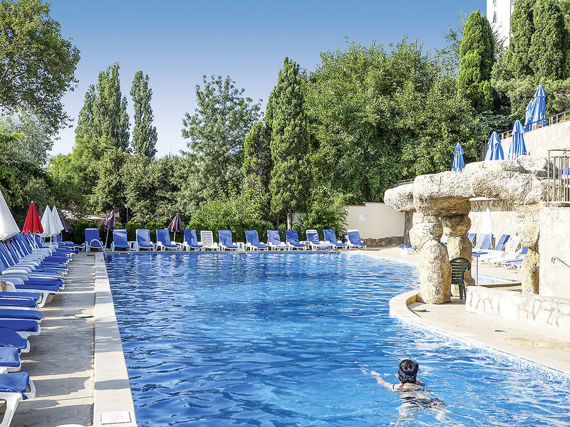 Lage: Durch die Uferpromenade vom langen Sandstrand getrennt. Das Zentrum von Goldstrand ist wenige Gehminuten entfernt. Eine Minibahn (gegen Gebühr) verkehrt regelmäßig.