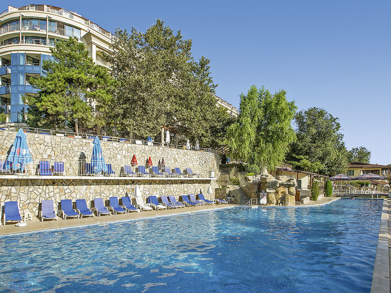 Lage: Durch die Uferpromenade vom langen Sandstrand getrennt. Das Zentrum von Goldstrand ist wenige Gehminuten entfernt. Eine Minibahn (gegen Gebühr) verkehrt regelmäßig.