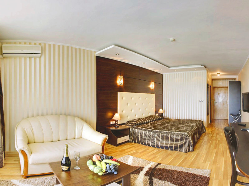 - Superior Sea View (DZM1), dvojlôžková izba, morská strana, výhľad na more, cca 25 m², posledná kompletná rekonštrukcia v roku 2013, celkový počet izieb v tomto type izby: 1, rozloženie: 1 spálňa, detská postieľka: zdarma. poplatok, klimatizácia: individuálne nastaviteľná, podlaha: dlažba, laminát, koberec, trezor: zadarmo, pohovka, písací stôl, chladnička: zadarmo, príslušenstvo na prípravu kávy/čaju, telefón, Internet: WLAN/WiFi: zadarmo , TV: plochá obrazovka, upratovanie: denne, zdarma, vaňa alebo sprcha, WC, fén, balkón: s posedením