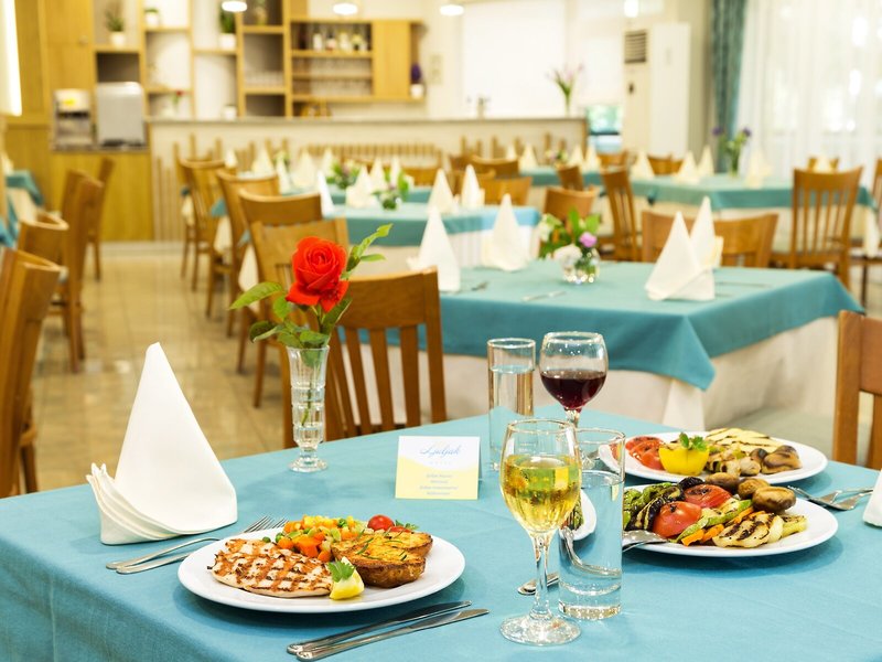 Jedlo a pitie: Možnosti stravovania zahŕňajú reštauráciu, kaviareň a bar. Hotel ponúka polpenziu, plnú penziu a all inclusive. Raňajky, obed formou bufetu a večere sú chutné a pestré. Pre hostí so špeciálnymi chuťovými pohárikmi sú k dispozícii vegetariánske jedlá. K dispozícii je výber alkoholických a nealkoholických nápojov.