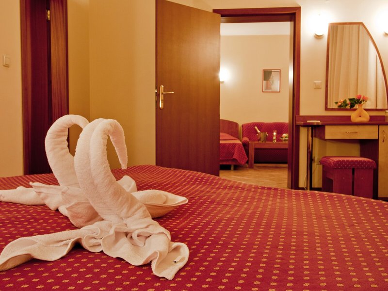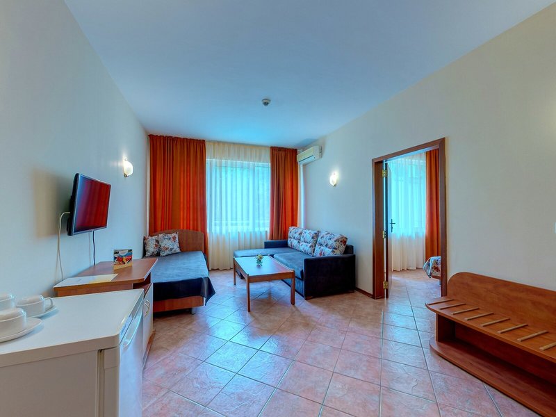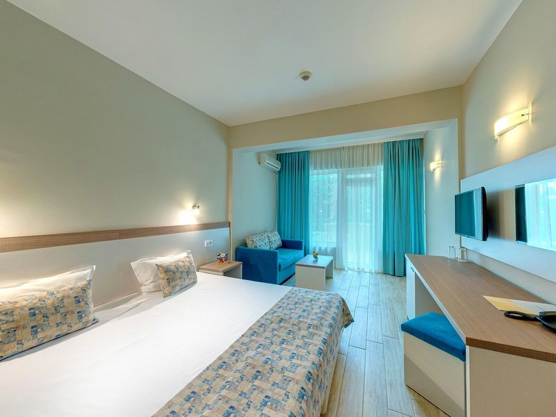Ubytovanie: Izby sú vybavené klimatizáciou a kúrením. Väčšina izieb má balkón. Izby sú vybavené manželskou posteľou alebo rozkladacou pohovkou. Na požiadanie je možné rezervovať si samostatné spálne. K dispozícii je aj detská postieľka a prístelka. K dispozícii je trezor a minibar. Štandardom je aj chladnička a príslušenstvo na prípravu čaju/kávy. Pre pohodlie hostí je k dispozícii žehliaca súprava. K dispozícii je aj telefón, satelitná TV a bezplatné Wi-Fi pripojenie na internet. Kúpeľňa so sprchovacím kútom a vaňou je vybavená aj sušičom vlasov. Hotel ponúka rodinné a nefajčiarske izby.