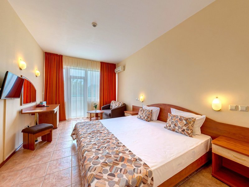Poloha a okolie Hotel sa nachádza v centre letoviska Zlaté piesky, približne 350 metrov od pláže a centrálnej promenády. Je tiež blízko cesty vedúcej z Varny do Albeny, čo hosťom ponúka pohodlný autobusový prístup do oboch miest.