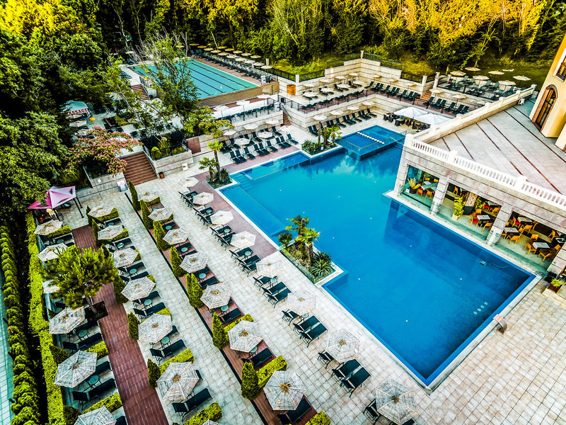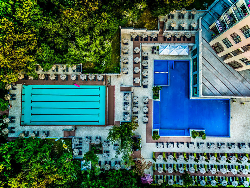 - Pools: 5 (Pool: ohne Gebühr, Liegen / Pool: ohne Gebühr, Liegen / Kinderpool: ohne Gebühr, Liegen / 25m-Sport-Pool: ohne Gebühr, Liegen / Aquapark: Juni - September, ohne Gebühr, Liegen)