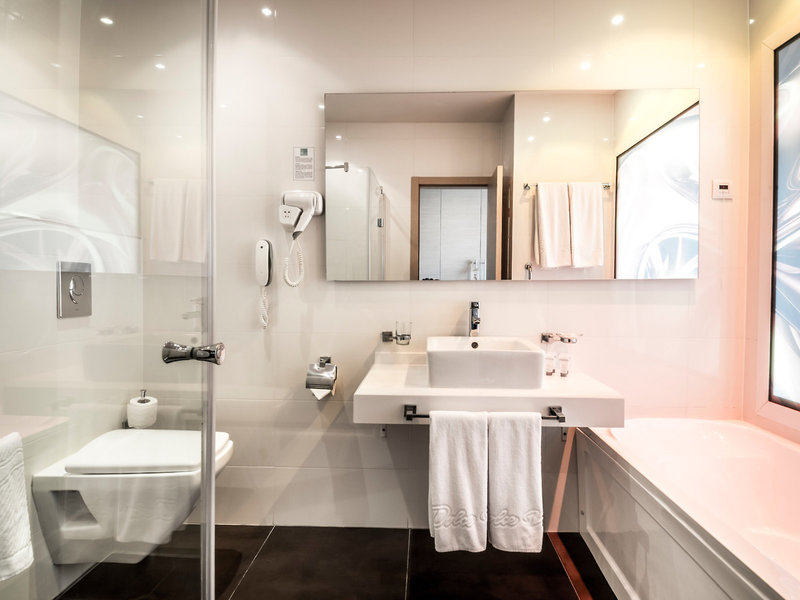 - Jednolôžková izba s manželskou posteľou Standard (DSX2), dvojlôžková izba, nefajčiarska izba, v hlavnej budove, strana do záhrady, výhľad do parku, cca 32 m², celkový počet izieb v tomto type izby: 1, rozloženie: 1 spálňa, 2 samostatné lôžka, detská postieľka: zadarmo, Nutná požiadavka, klimatizácia: zadarmo, individuálne nastaviteľná, centrálne ovládaná, podlaha: dlažba, trezor: zadarmo, chladnička: zadarmo, príslušenstvo na prípravu kávy/čaju , rýchlovarná kanvica, telefón, internet: WLAN/WiFi: zadarmo, TV: plochá obrazovka, Káblová TV, upratovanie: denne, zadarmo, vaňa alebo sprcha, WC, fén, balkón: s posedením
