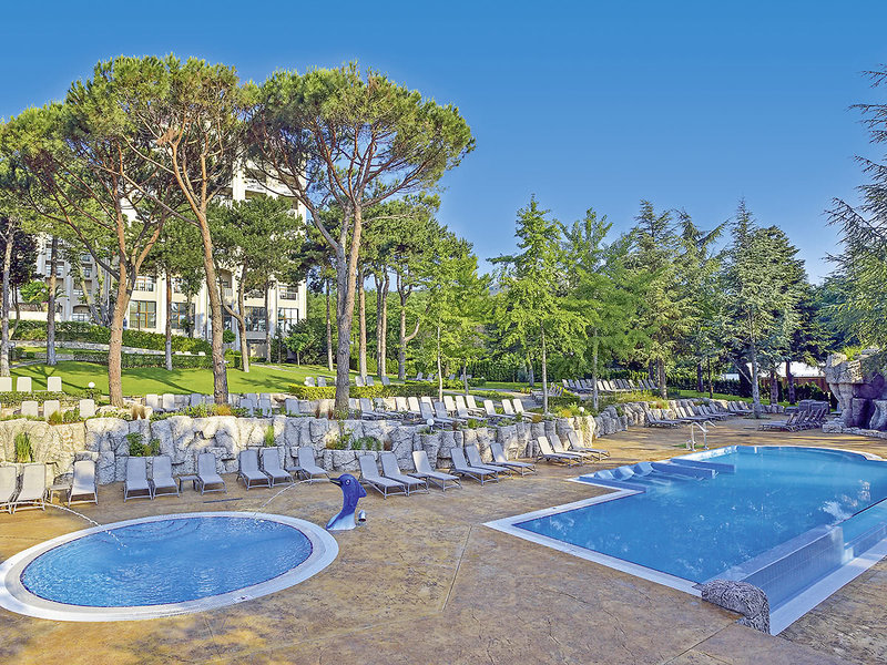 Ausstattung: Beliebtes und elegantes Hotel mit ausgezeichnetem Service. Außenbereich mit 4 Swimmingpools, Aquapark mit 3 Rutschen, Sonnenterrassen, Liegen, Schirme am Pool, 2 Liegen, Schirm pro Zimmer am Strand (nach Verfügbarkeit), Pool-/Snackbar, Strandbar. Empfangshalle mit Rezeption, WLAN, Lobbybar, Café, Buffetrestaurant, italienisches Restaurant "Al Dente". Landeskategorie: 5 Sterne, 727 Zimmer, 9 Etagen, 8 Lifte.