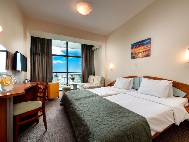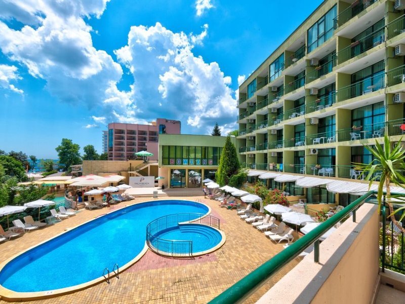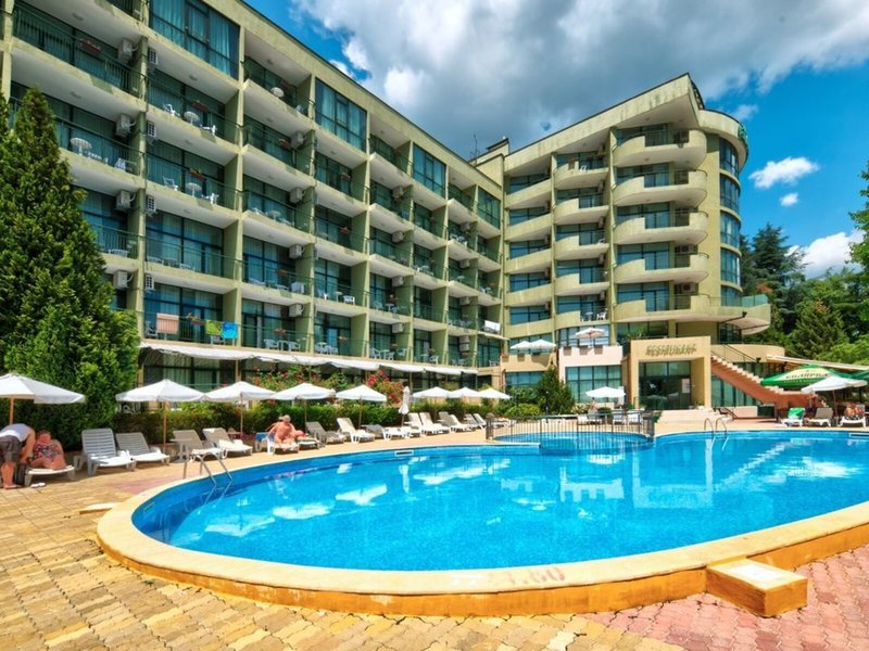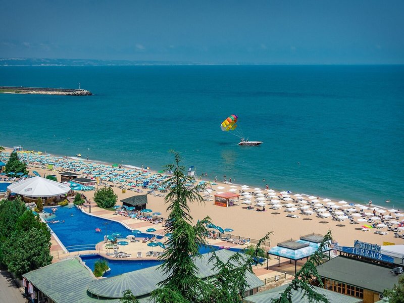 Poloha a okolie Hotel sa nachádza len 30 m od pláže v rekreačnom stredisku Zlaté piesky, uprostred najkrajšej prírody na bulharskom pobreží Čierneho mora. V okruhu 5 minút chôdze nájdete najbližšie bary, reštaurácie, nočný život a obchody, v blízkosti sa nachádza aj aquapark (500 m). Medzi ďalšie pamiatky v tejto oblasti patrí delfinárium a archeologické múzeum vo Varne (asi 25 minút jazdy) a botanická záhrada asi 50 minút jazdy autom. Na mys Kaliakra sa verejnou dopravou dostanete približne za 2 hodiny. Do Varny je to asi 18 km a letisko Varna asi 20 km. Letisko Burgas je vzdialené približne 155 km.