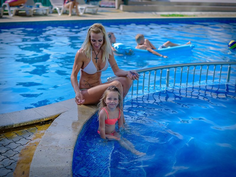- Bazény: detský bazén, vnútorný bazén, vonkajší bazén, slnečníky pri bazéne, ležadlá pri bazéne
