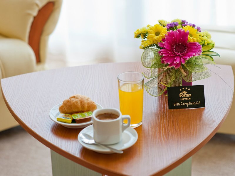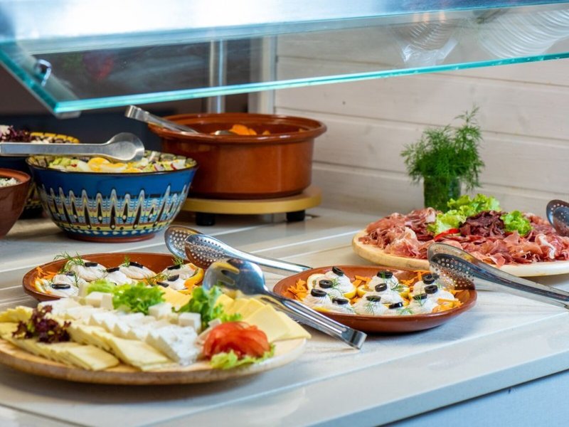 Jedlo a pitie: Gastronomická časť má bar. V nefajčiarskej reštaurácii s klimatizáciou na hostí čakajú rôzne špeciality. Ubytovanie ponúka tieto rezervovateľné možnosti stravovania: prenocovanie vrátane raňajok, polpenzia a all inclusive. Na raňajky, obed a večeru si hostia môžu pomôcť bufetom alebo si vybrať jedlá z jedálneho lístka podľa svojej chuti (na obed a večeru). V prípade potreby je možné pripraviť aj detské menu. Alkoholické a nealkoholické nápoje sú pre hostí v cene.