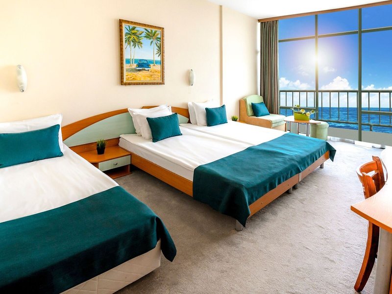 Ubytovanie: Klimatizácia a kúrenie zabezpečujú príjemnú vnútornú klímu v izbách. Vo väčšine ubytovacích jednotiek si hostia môžu vychutnať výhľad na more zo svojho balkóna alebo terasy. Izby s kobercom sú vybavené manželskou posteľou alebo rozkladacou pohovkou. Prístelky je možné vyžiadať. K dispozícii je aj trezor, minibar a písací stôl. Telefón s priamou voľbou, TV so satelitným/káblovým príjmom a WiFi (bez poplatku) poskytujú najlepší dovolenkový komfort. Kúpeľňa je vybavená sprchovacím kútom, vaňou a sušičom vlasov. K dispozícii sú aj bezbariérové izby s bezbariérovými kúpeľňami. Hotel ponúka rodinné a nefajčiarske izby.