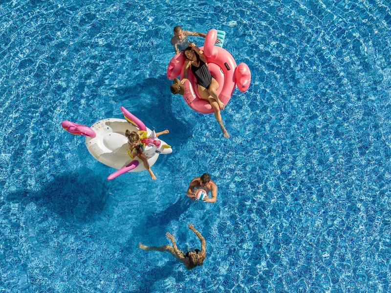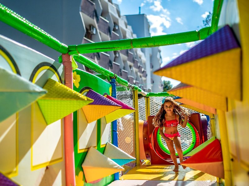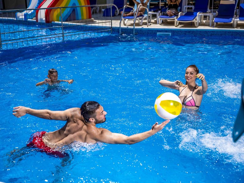 Sport & Fitness: Ein Außenpool und ein Hallenbad (ohne Gebühr) laden zum entspannten Badevergnügen ein. Kinder können sich in einem Planschbecken austoben. Im Badebereich gibt es zudem einen Whirlpool (gegen Gebühr), eine Wasserrutsche und eine Poolbar. Auf der Sonnenterrasse mit Liegestühlen und Schirmen lässt sich der Urlaub genießen. Wer auch auf Reisen nicht auf Sport verzichten möchte, dem bietet die Unterbringung Boccia (ohne Gebühr). Das Resort bietet Sportfreunden auch viele Aktivitäten im Innenbereich, nämlich ein Fitnessstudio, Tischtennis, Billard, Darts, Yoga, Aerobic und Tischfussball/Kickern. Die Unterbringung verfügt über einen Wellnessbereich mit einer Sauna und einem Dampfbad sowie gegen zusätzliche Gebühr ein Spa, einen Hammam und Massage-Anwendungen. Ein Animationsprogramm, ein Miniclub und eine Minidisco sorgen für besten Freizeitspaß.