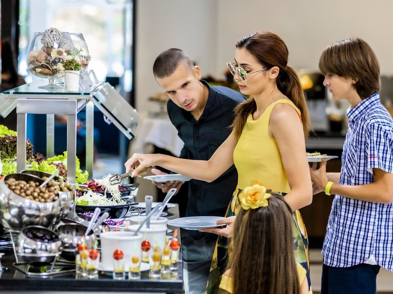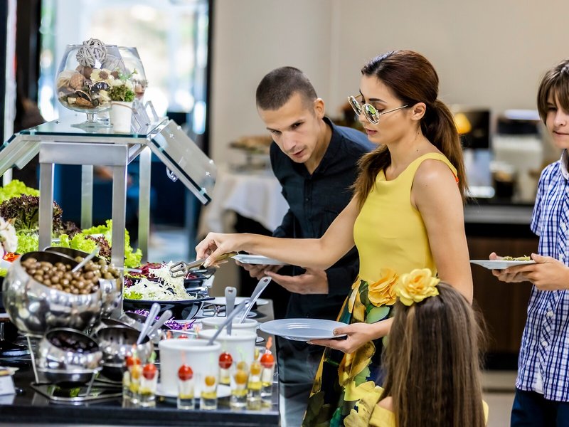 Jedlo a pitie: Gastronomická časť ponúka lobby bar. Hostia sú obsluhovaní v reštaurácii (nefajčiarska, bufet, klimatizácia a vysoké stoličky pre deti). Osviežujúce nápoje v plážovom bare sa postarajú o chvíle pohody. All inclusive je možné rezervovať. Teplé raňajky formou bufetu vás motivujú k rannému vstávaniu. V čase obeda a večer si hostia pomáhajú v bufete. Na požiadanie sú pripravené diétne jedlá, bezlepkové jedlá, vegetariánske jedlá, detské menu, kóšer strava, bezlaktózová strava a vegánske jedlo. Rezort ponúka aj občerstvenie. Špeciálnou atrakciou je show cooking. Pre hostí je zahrnutá ponuka alkoholických a nealkoholických nápojov, ako aj domácich značiek.