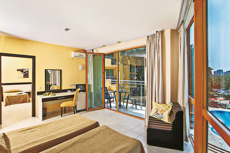 - 41-45 qm, Familien, mit Verbindungstür, Nichtraucher, Sofabett, 2 Bäder, Dusche, WC, Haartrockner, Fliesen, Klimaanlage, Korridor/Flur, Minibar kostenpflichtig, 2 TVs (Sat-TV, deutschsprachiges Programm, landestypisches Programm, Flachbildschirm), WLAN, Balkon, Bettwäschewechsel, Handtuchwechsel