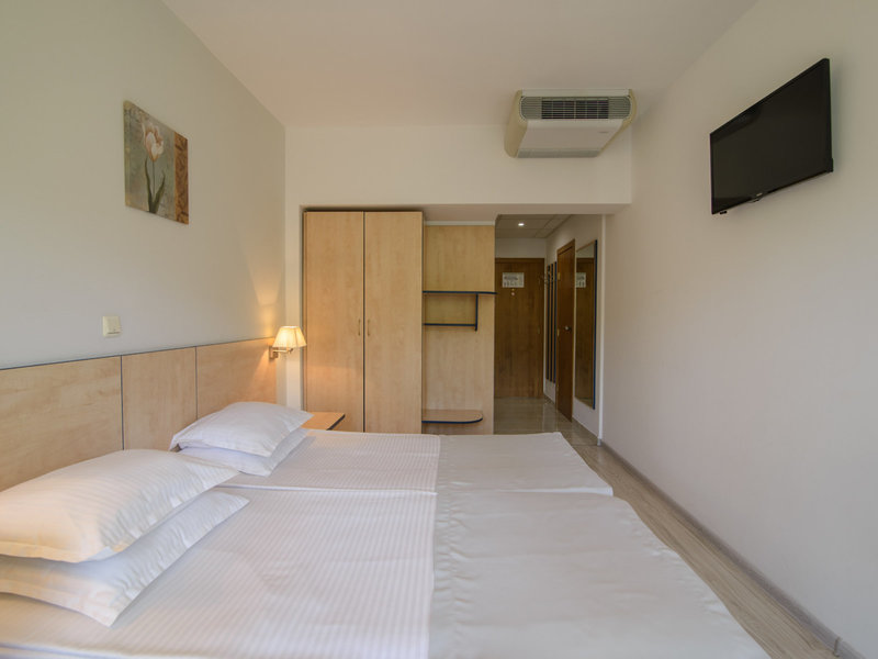 - Double Room Superior (DZX1), Doppelzimmer, Nichtraucherzimmer, im Hauptgebäude, Poolblick, Parkblick, ca. 27 m², letzte Teilrenovierung 2015, Gesamtanzahl der Räume in diesem Zimmertyp: 1, Aufteilung wie folgt: kombiniertes Wohn-/Schlafzimmer, 2 Doppelbetten, 1 Schlafsofa, 1 Zustellbett, Babybett: ohne Gebühr, Reservierung notwendig, Klimaanlage: ohne Gebühr, saisonabhängig, individuell regelbar, kalt, warm, Fußboden: Laminat, Teppichboden, Safe: ohne Gebühr, Sofa, Schreibtisch, Telefon, Internet: WLAN/WiFi: ohne Gebühr, Fernseher: Kabel-TV, Reinigungsservice: täglich, ohne Gebühr, Dusche, WC, Föhn, Balkon: mit Sitzgelegenheit