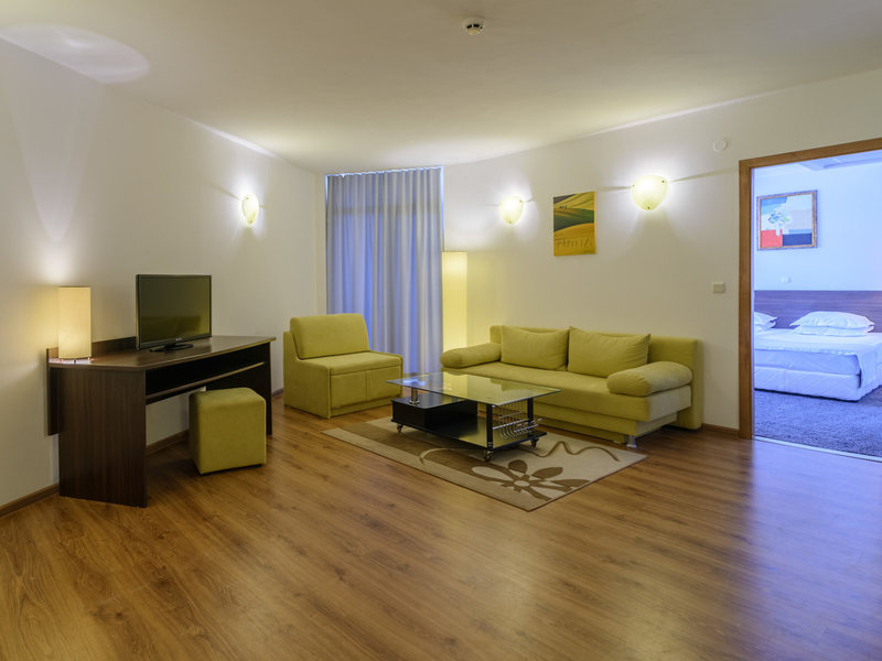 - Apartmán (APX1), Apartmán, Nefajčiarska izba, v hlavnej budove, Výhľad na bazén, Výhľad na park, cca 47 m², posledná čiastočná rekonštrukcia 2015, Celkový počet izieb tohto typu: 2, Rozloženie: pozostáva z 2 izieb, vizuálne oddelených posuvnými dverami, 2 manželské postele, 2 rozkladacie pohovky, Detská postieľka: bezplatne, nutná rezervácia, Klimatizácia: bezplatne, sezónne, Podlaha: laminát, koberec, Trezor: bezplatne, Pohovka, Písací stôl, Telefón, Internet: Wi-Fi: bezplatne, Televízor: káblová TV, Upratovacia služba: denne, bezplatne, Sprcha, WC, Fén, Balkón: s posedením