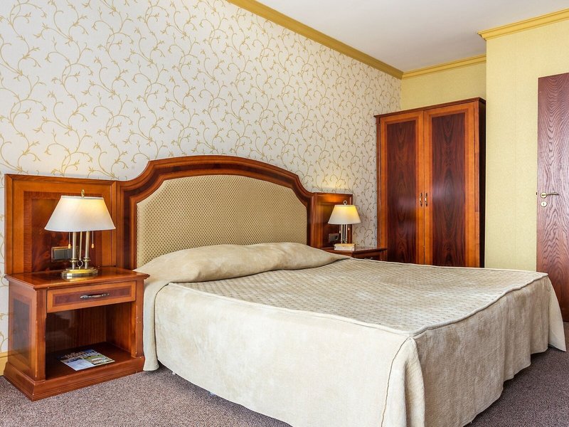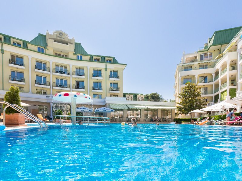 Lage & Umgebung Das Hotel liegt im Zentrum des ältesten bulgarischen Badeorts an der Schwarzmeerküste: St. Konstantin und Elena. Das Hotel steht inmitten eines natürlichen Parks mit sauberer Luft und mineralischen Quellen, nur etwa 150 m von der Meeresküste und dem Strand entfernt. Das Hotel ist ca. 8 km von Varna entfernt, wo sich der Internationale Flughafen Varna befindet.