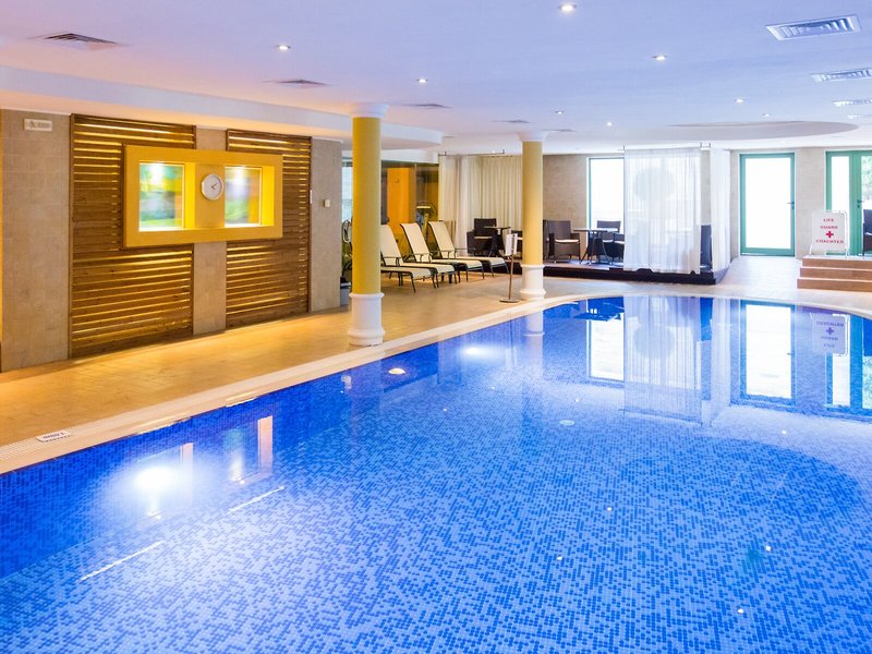 - Bazény: Detský bazén, Vyhrievaný vonkajší bazén, Vnútorný bazén, Vonkajší bazén, Slnečníky pri bazéne, Ležadlá pri bazéne, Tobogán
