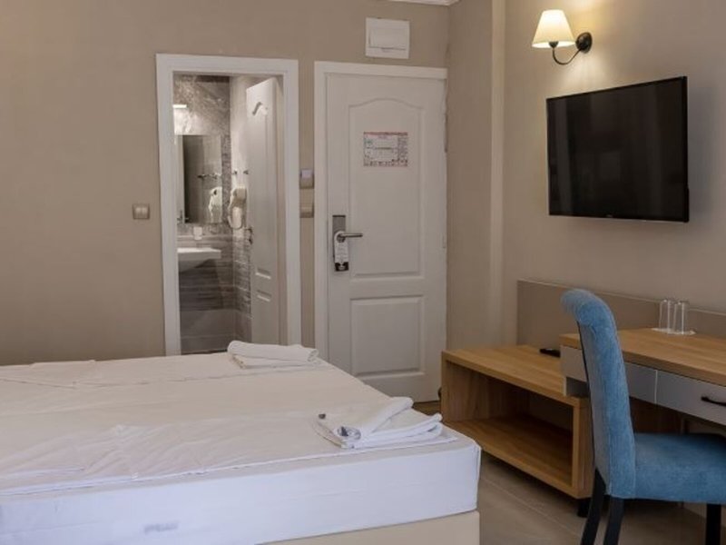 So wohnen Sie: Für angenehmes Raumklima in den Zimmern sorgen eine Klimaanlage und eine Heizung. Die Gäste können den Meerblick von Balkon oder Terrasse genießen. Die Zimmer verfügen über ein Sofabett. Kinderbetten für die jüngsten Gäste sind ebenso vorhanden. Auch ein Minikühlschrank und eine Tee-/Kaffeemaschine sind vorhanden. Verschiedene Kommunikations- und Unterhaltungsmöglichkeiten werden durch die komfortable Ausstattung mit einem Telefon, einem TV-Gerät und WiFi (gegen Gebühr) gewährleistet. Im Badezimmer – ausgestattet mit einer Dusche – gibt es einen Haartrockner. Der Komplex bietet Familien- und Nichtraucherzimmer.