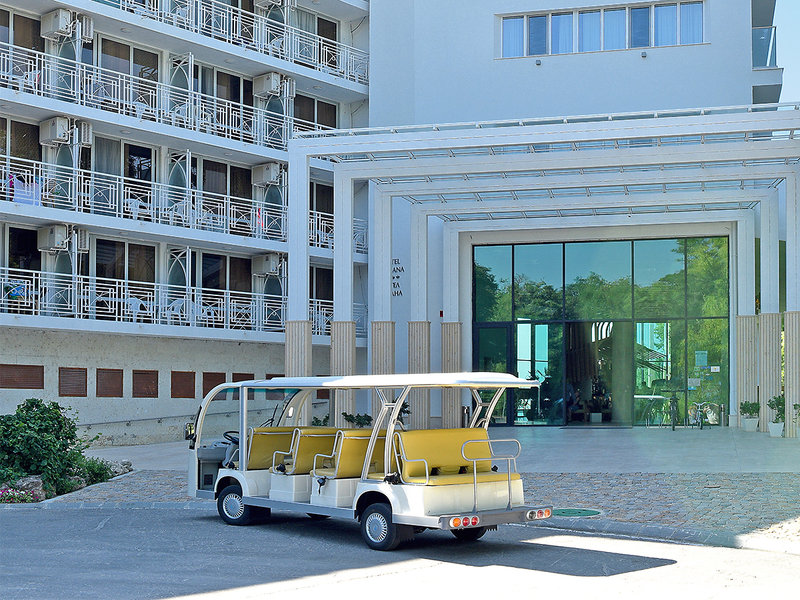 Ausstattung: Anlage der gehobenen Mittelklasse mit Poollandschaft mit Terrasse, Pool-/Snackbar, 2 Liegen, 1 Schirm am Pool (je nach Verfügbarkeit), kostenlose Badetücher, 1 Schirm und 2 Liegen am Strand ab der 3. Reihe inklusive. Empfangshalle mit Rezeption, WLAN, TV-Ecke, Großbildschirm, Lobbybar, Terrasse. Separat gelegenes Restaurant, Außenterrasse, Minimarkt. Landeskategorie: 4 Sterne, 318 Zimmer, 8-10 Etagen, 3 Lifte.