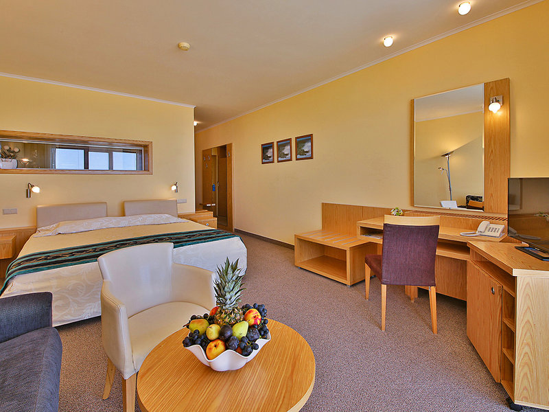Izba Deluxe (DZD, cca 45 m²), klimatizácia, minibar (dopĺňaný denne), kávovar/čajník, telefón, Wi-Fi, TV, trezor. Sprcha, WC, fén. Balkón s výhľadom na more. Max. 3 dospelí/2 dospelí + 2 deti, k dispozícii aj pre jednu osobu (EZD).