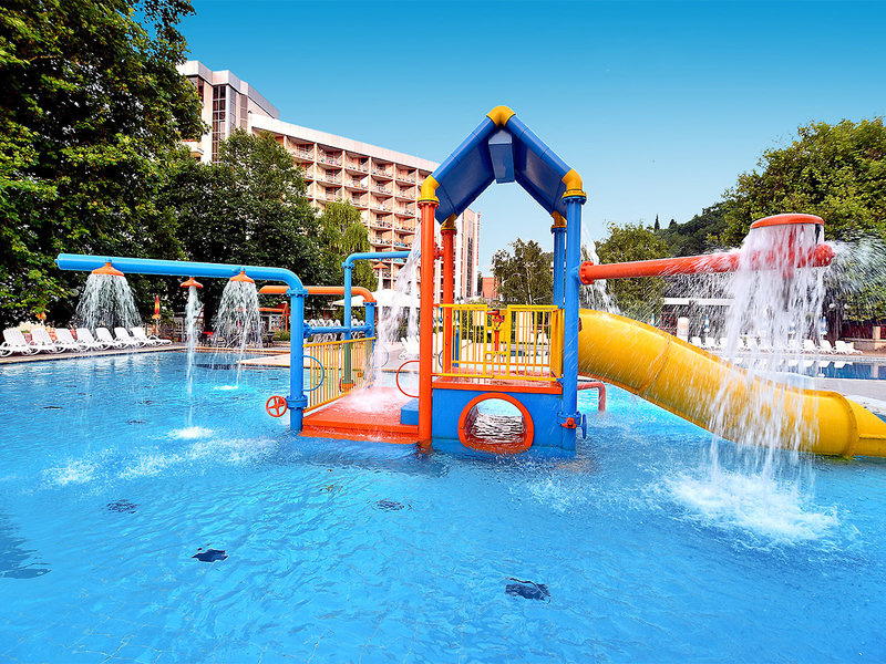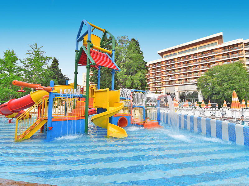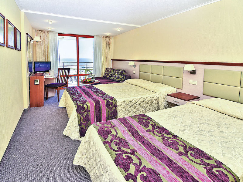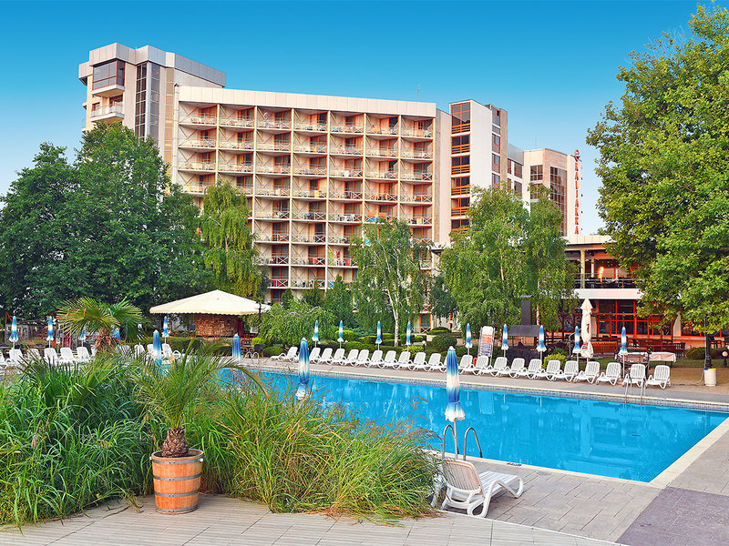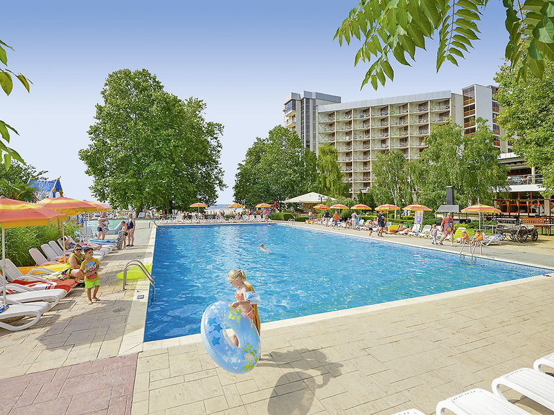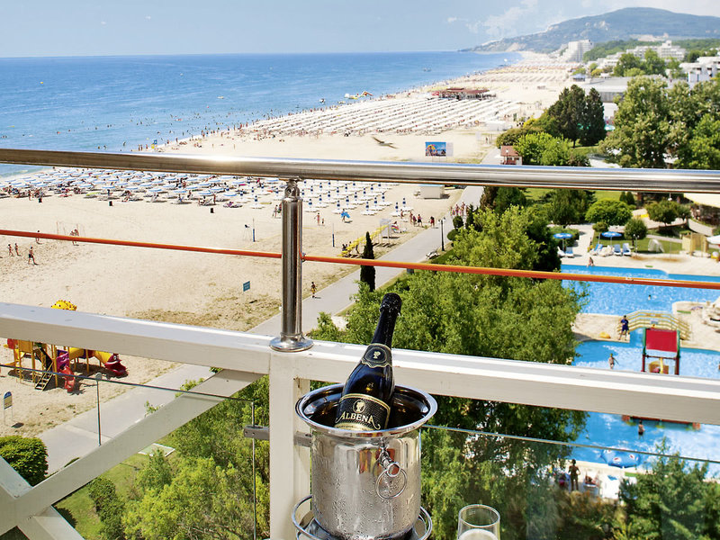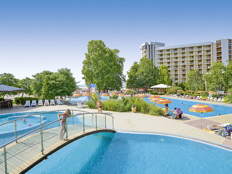 Lage: Nur durch die Uferpromenade vom flach abfallenden Sandstrand getrennt, in bevorzugter Umgebung von Albena. Bis zum Flughafen Varna ca. 40 km.