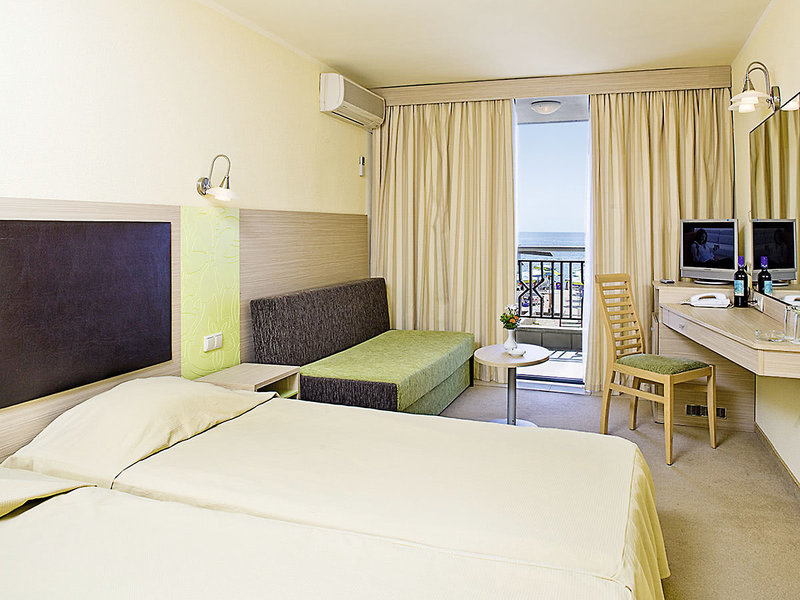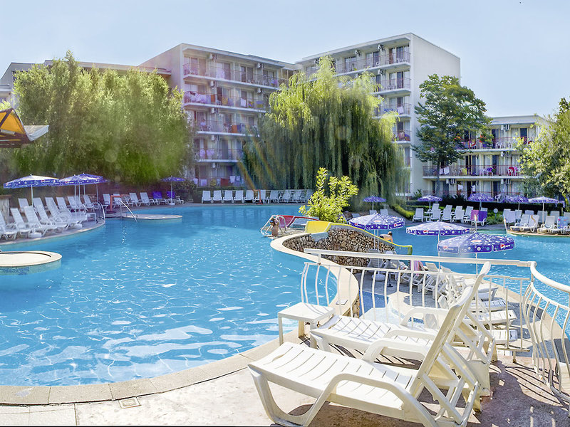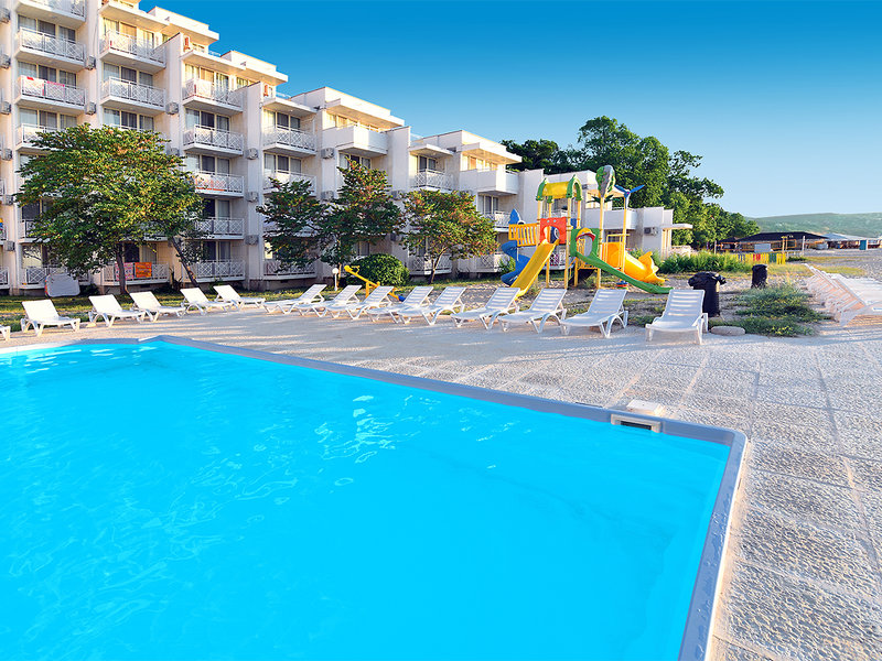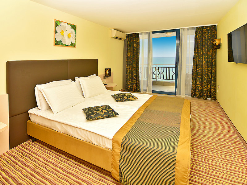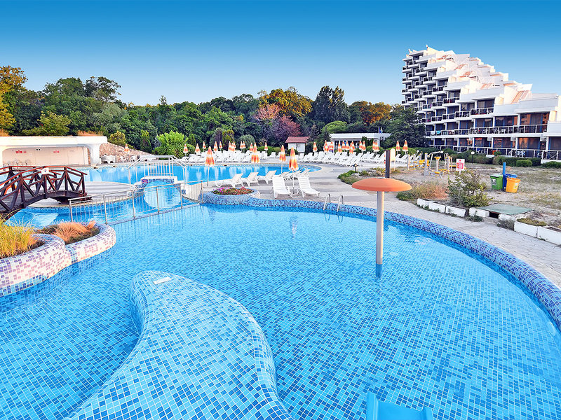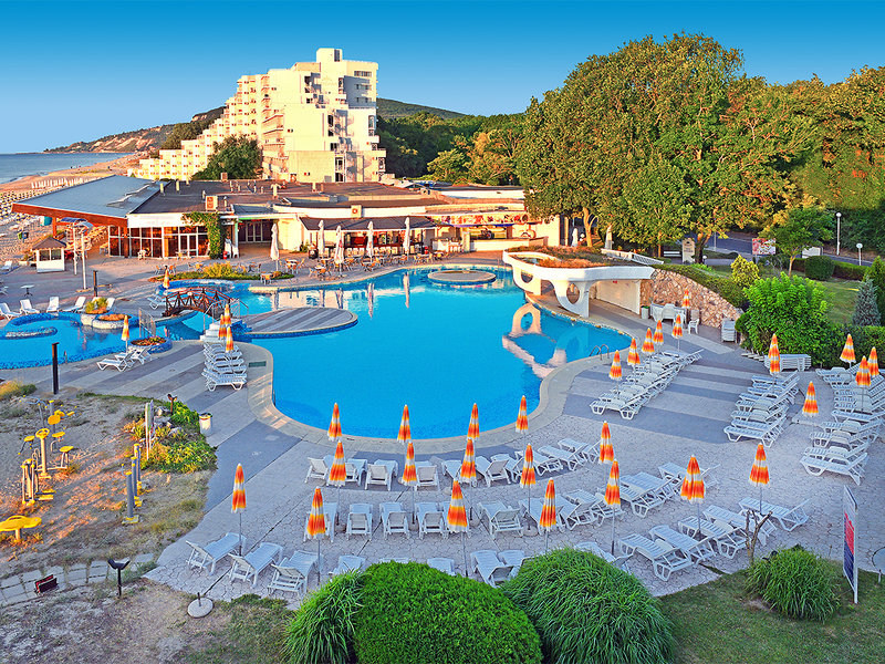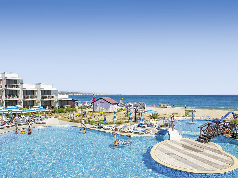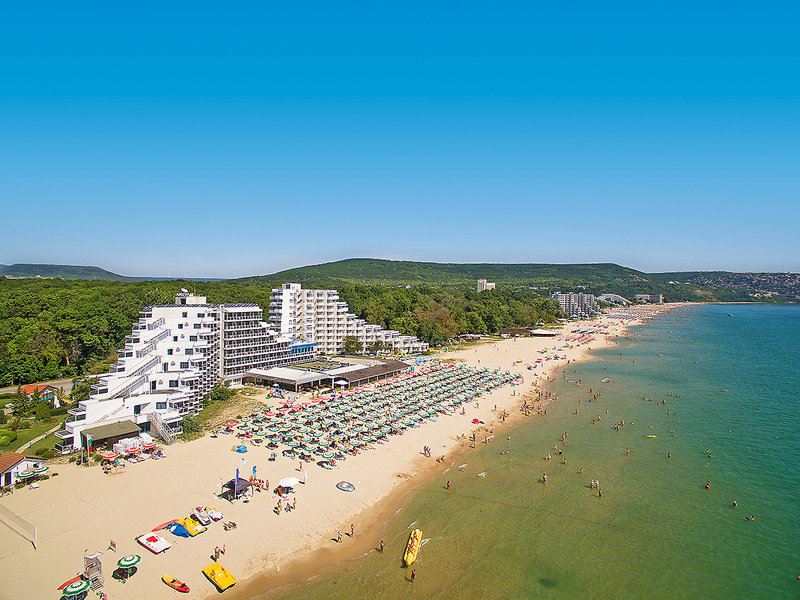 Lage: Direkt am breiten, flach abfallenden Sandstrand. Zum Zentrum von Albena mit zahlreichen Restaurants und Bars sind es ca. 10 Gehminuten.