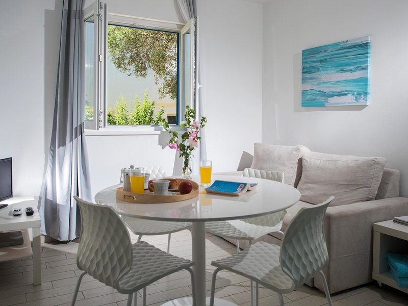 - VINEA (APX1), Appartement, Landseite, Gartenblick, ca. 38 m², letzte Komplettrenovierung 2015, Wohnzimmer, 1 Schlafzimmer, 2 Einzelbetten, 1 Schlafsofa, Babybett: ohne Gebühr, Reservierung notwendig, Klimaanlage: individuell regelbar, Fußboden: Fliesenboden, Sofa, Kochnische, Kühlschrank, Mikrowelle, Wasserkocher, Esstisch, Telefon, Internet: WLAN/WiFi: ohne Gebühr, Fernseher: im Wohnbereich, deutsches Programm, Sat-TV, Reinigungsservice, Dusche, WC, Föhn, Balkon oder Terrasse: mit Sitzgelegenheit, Nebenkosten: Endreinigung: ohne Gebühr