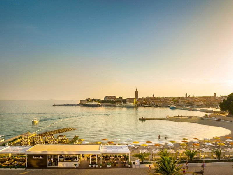 Poloha a okolie Pláž (náhorné plošiny na kúpanie) je vzdialená asi 10 minút chôdze. Hotel sa nachádza v mestskom parku Komrcar nad starým mestom Rab, ktorý je vzdialený cca 300 m (čiastočne po schodoch). Je to asi 5 minút chôdze od Neustadt s jeho nákupnými a zábavnými možnosťami.