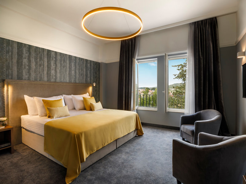 - Superior Double (DZX6), dvojlôžková izba, v hlavnej budove, strana do parku, výhľad do parku, cca 23 - 25 m², posledná kompletná rekonštrukcia v roku 2018, 1 manželská posteľ (180x200cm), klimatizácia: studená, teplá, podlaha: koberec. , trezor, písací stôl, minibar: za poplatok, telefón, Internet: WLAN/WiFi: zadarmo, televízia: v spálni, satelitná TV, izbová služba: za príplatok, sprcha, WC, fén