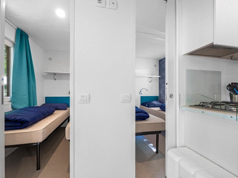 - Mobilný dom Comfort - Easy a Tent (Funtana) (MHX1), mobilný dom, nefajčiarska izba, novostavba, strana do parku, výhľad do záhrady, výhľad do parku, cca 32 m², celkový počet izieb v tomto type izby: 3, dispozícia nasledovne: 3 spálne, 4 samostatné postele (80x200cm), 1 manželská posteľ (160x200cm), klimatizácia: zadarmo, individuálne nastaviteľná, studená, teplá, kúrenie: individuálne nastaviteľná, podlaha: laminát, kuchyňa, chladnička, plyn/ elektrický sporák, mikrovlnná rúra, kávovar, kávovar/čajník, jedálenský stôl, internet: WLAN/WiFi: zdarma, sprcha, WC, 2 kúpeľne, terasa: s ležadlami, veranda